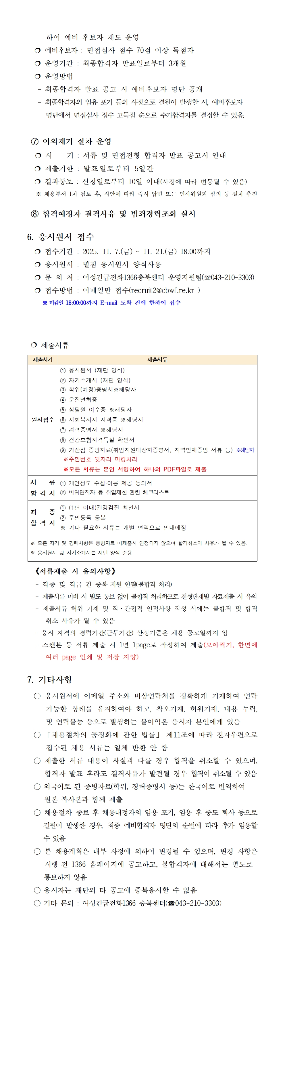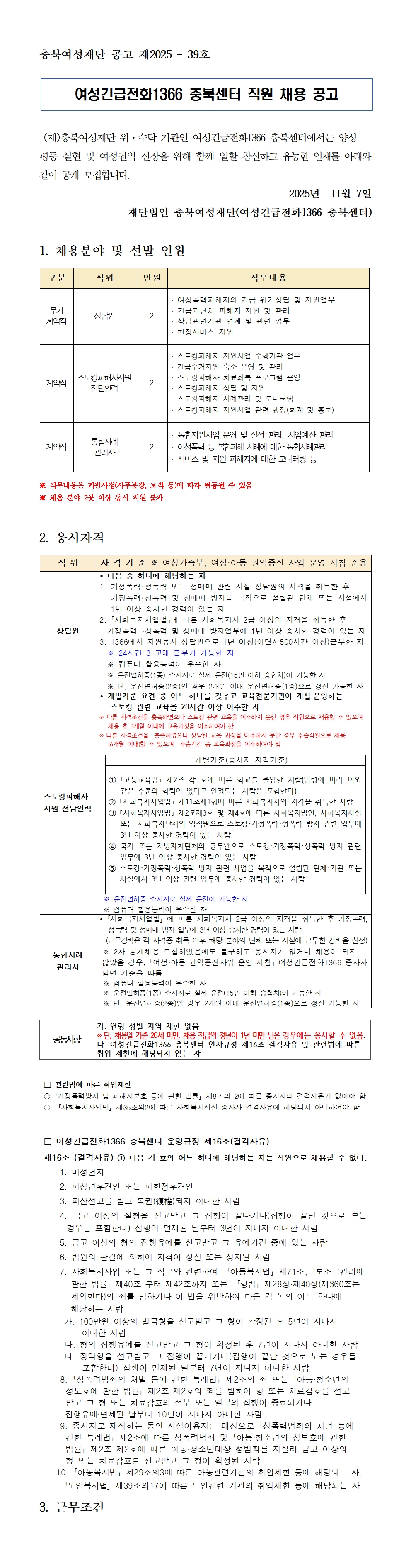 [2025-39] 여성긴급전화1366 충북센터 직원 채용 공고다운로드