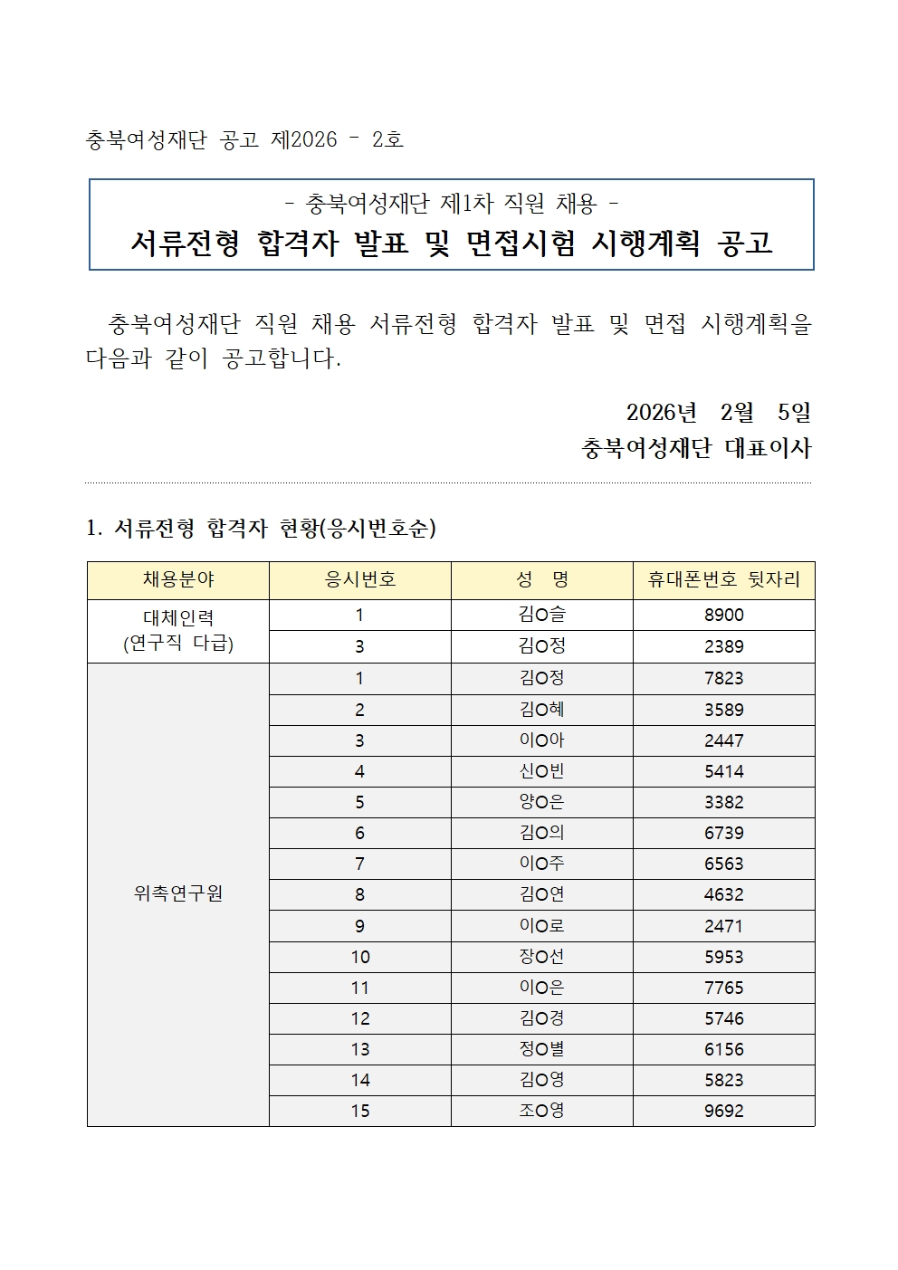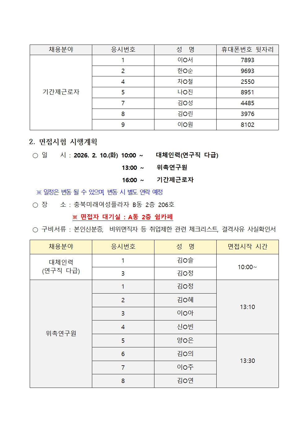 2026-2 공고문(서류전형 합격자 발표 및 면접시험 시행계획공고)다운로드