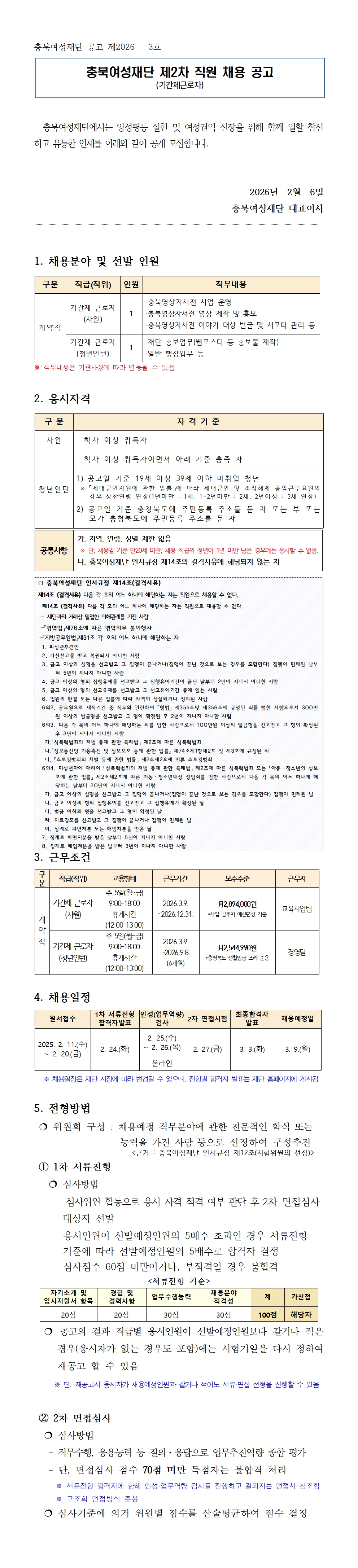 [2026-03] 충북여성재단 제2차 직원 채용 공고(기간제근로자)