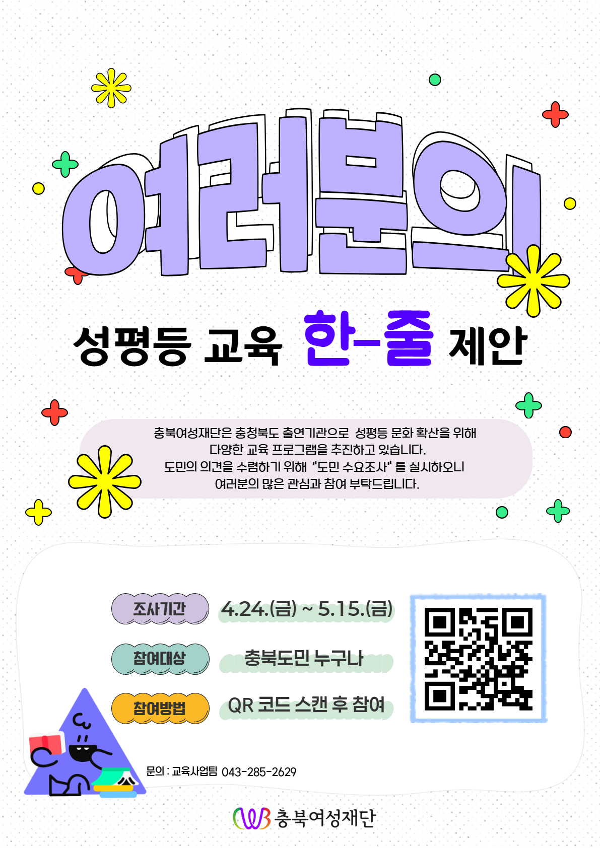성평등 충북 실현을 위한 여성 · 가족 정책을 연구합니다.