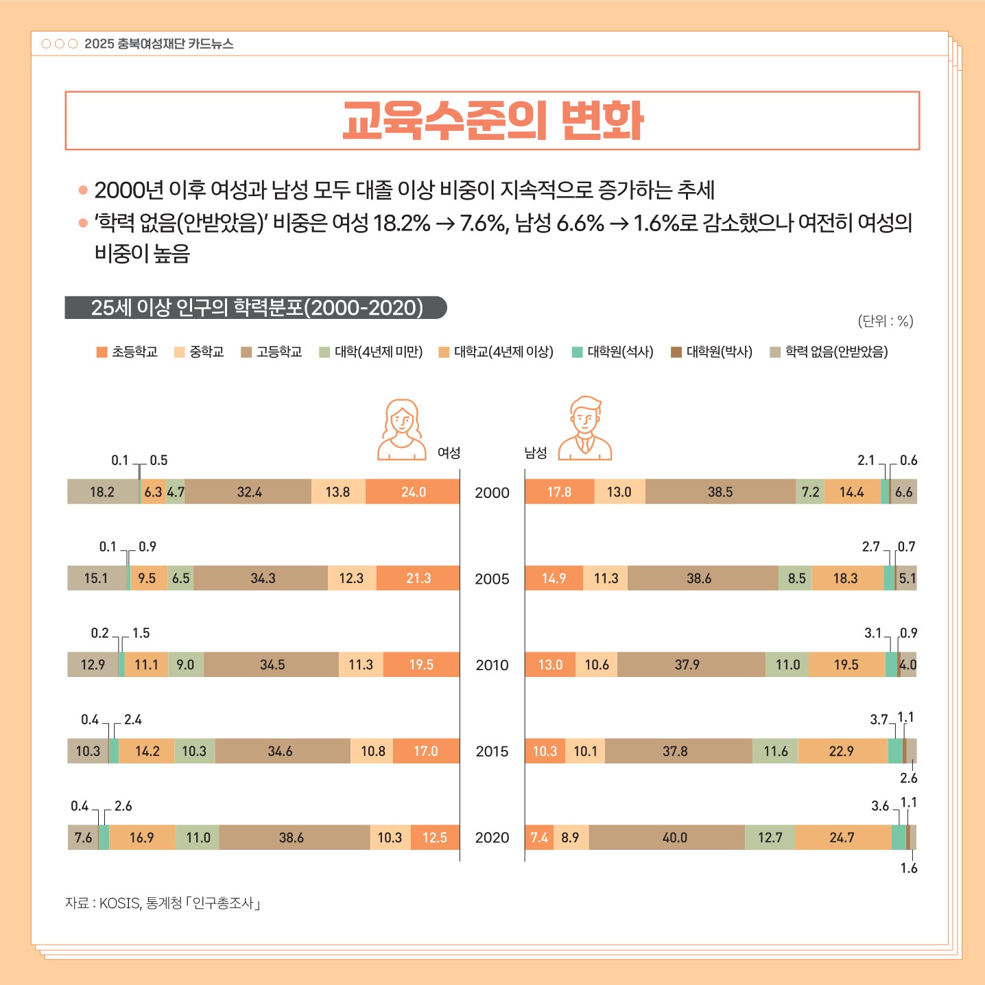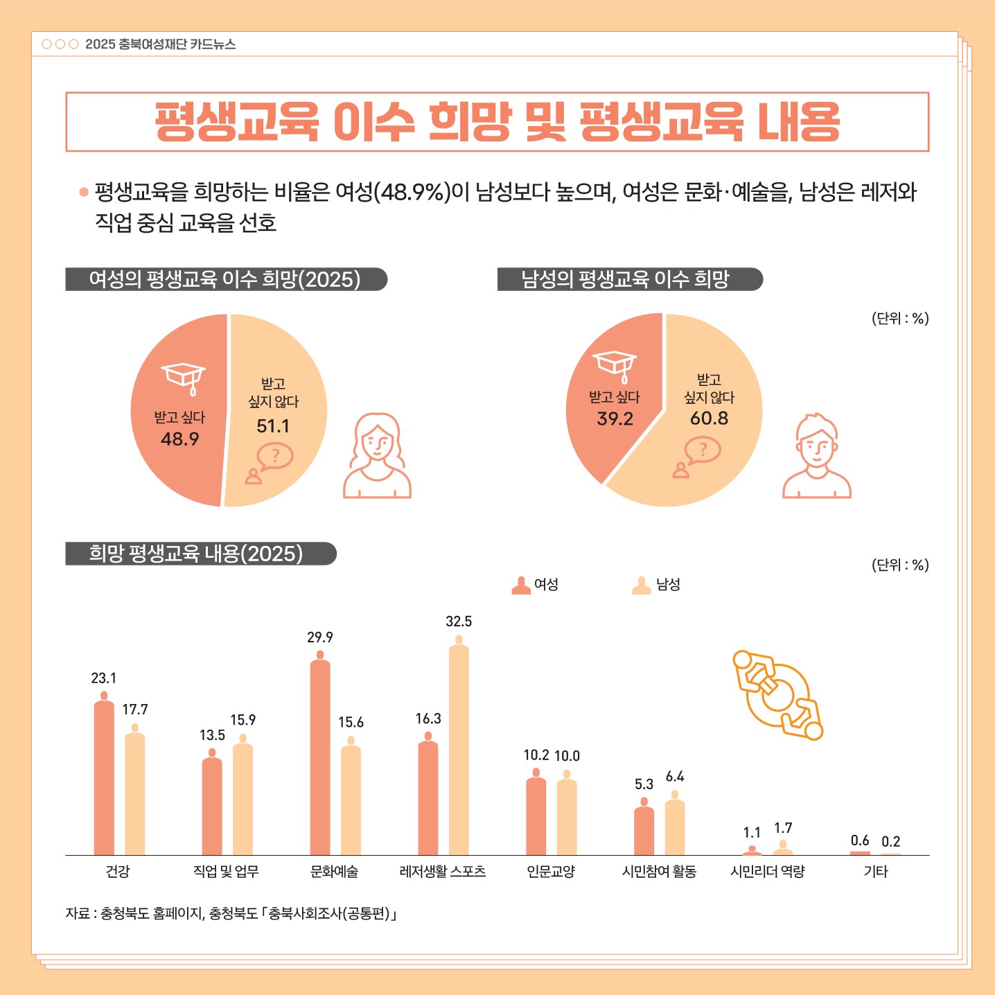 (교육 및 훈련, 노동 및 소득) 2025 통계로 보는 충북 여성과 남성의 삶